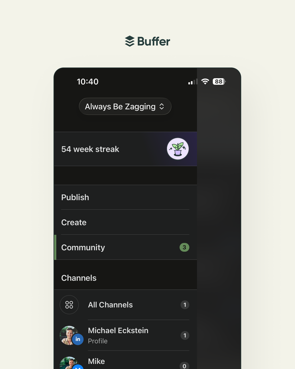 Buffer is a social media productivity tool for creators, small businesses, freelancers, and agencies. A place to schedule posts, manage comments, and track performance across Instagram, LinkedIn, Threads, Bluesky, Facebook, X, TikTok, YouTube, Mastodon, and Google Business Profiles without getting sucked into the feed.